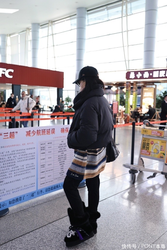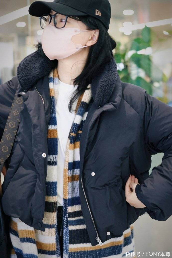 尤其是在机场上被偶遇,也能把黑色羽绒服穿出少女感!人家搭配一条条纹针织围巾,和黑色棒球帽,就等你穿出年轻活力!